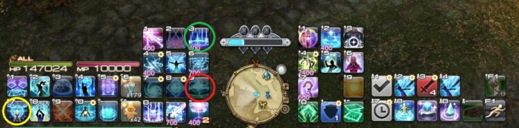 私は多ボタンマウスと左手デバイスを組み合わせてるので、アビリティ系スキルは左手デバイス、ウェポンスキル(魔法)はマウスでクリック操作といった具合に割り当てています。