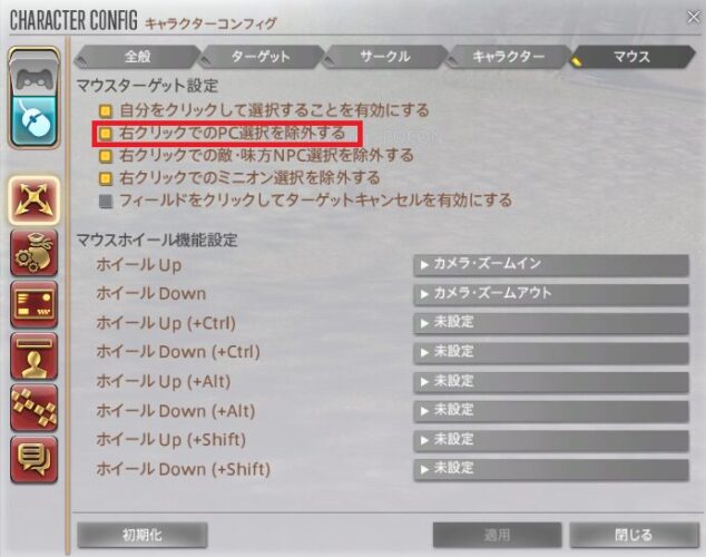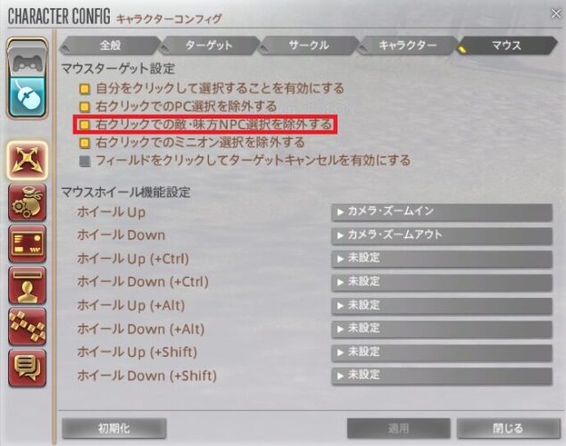 『右クリックでの敵・味方NPC選択を除外する』 の項目のオススメ設定