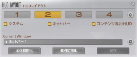 HUDのレイアウトは、1個~4個まで保存できるので1番はパッド用、2番は多ボタンマウス用といった具合に分けると良いでしょう。